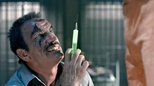 Dazu nimmt der Film auch schnell an Fahrt auf und geht gleich in die vollen. Von dem unerfreulichen Besuch bei einer Familie, der seine Opfer fordert bis hin zum knallharten Knastalltag, bei dem allerdings auch mit Klischees nicht gegeizt wird macht Yuzna keine Gefangenen und bietet gleich von der ersten Sekunde weg entsprechende Action.