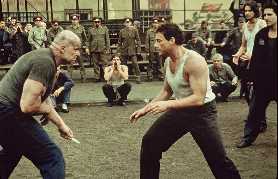 Erstmal muss ich sagen, „In Hell“ ist nicht so schlecht, wie es überall heißt. Wer aber ein Fan der alten Van Damme Filme ist und den Film zum ersten Mal sieht, wird sich erst mal umgewöhnen müssen. In Hell ist in erster Linie ein Drama mit Thriller-Anteilen. Van Damme zeigt also keinen Spagat, macht keinen Helikopter Kick und ballert sich auch nicht durch die Gegend. Stattdessen versucht er sich in diesem sehr harten Gefängnisfilm als Schauspieler. Und in diesem Film ist er tatsächlich der beste Schauspieler am Set. Die schlechte Nachricht dabei, der Rest des Casts besteht in erster Linie aus diversen grimmig guckenden Schauspielern aus dem Ostblock, die nicht viel können außer halt grimmig gucken.